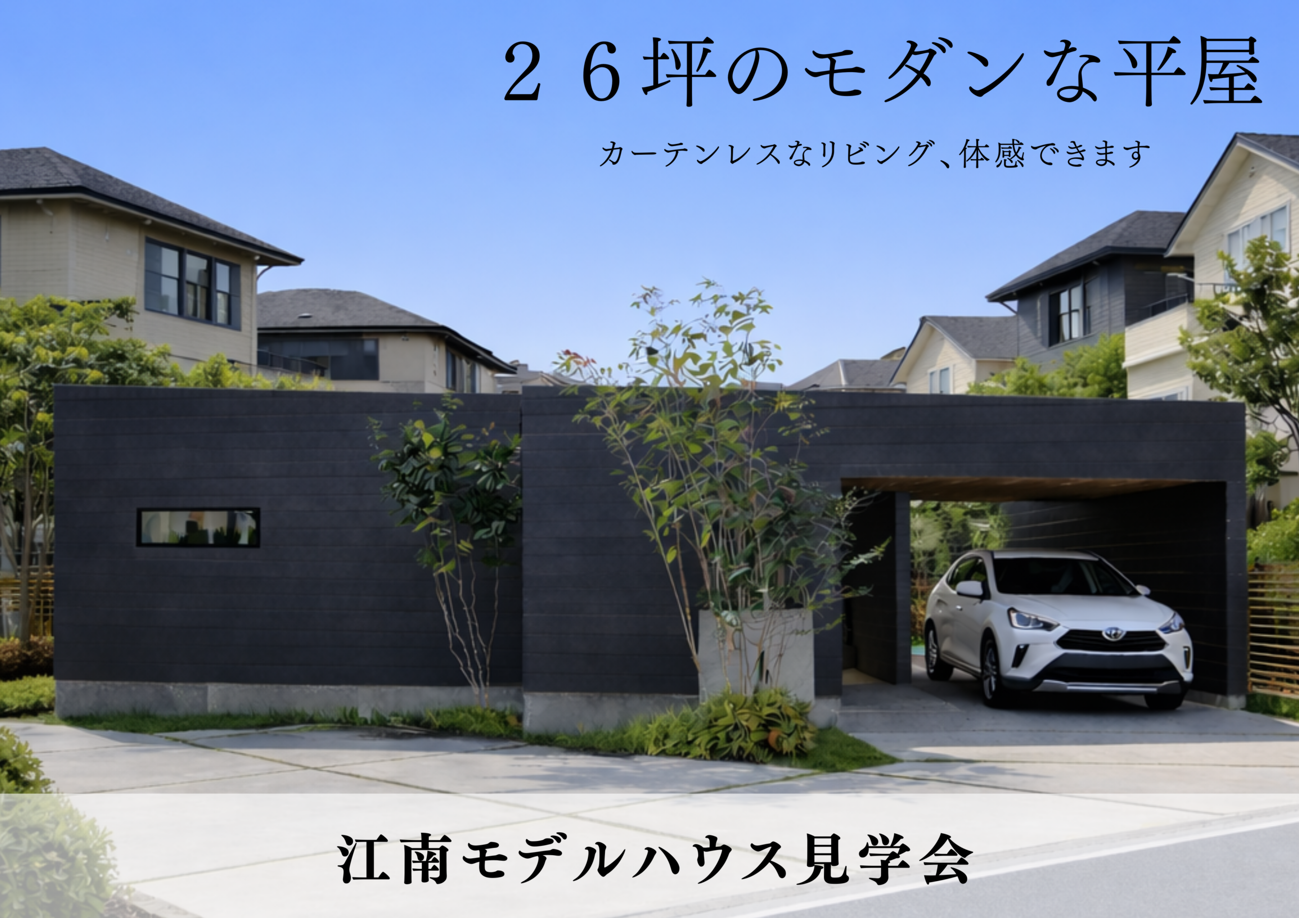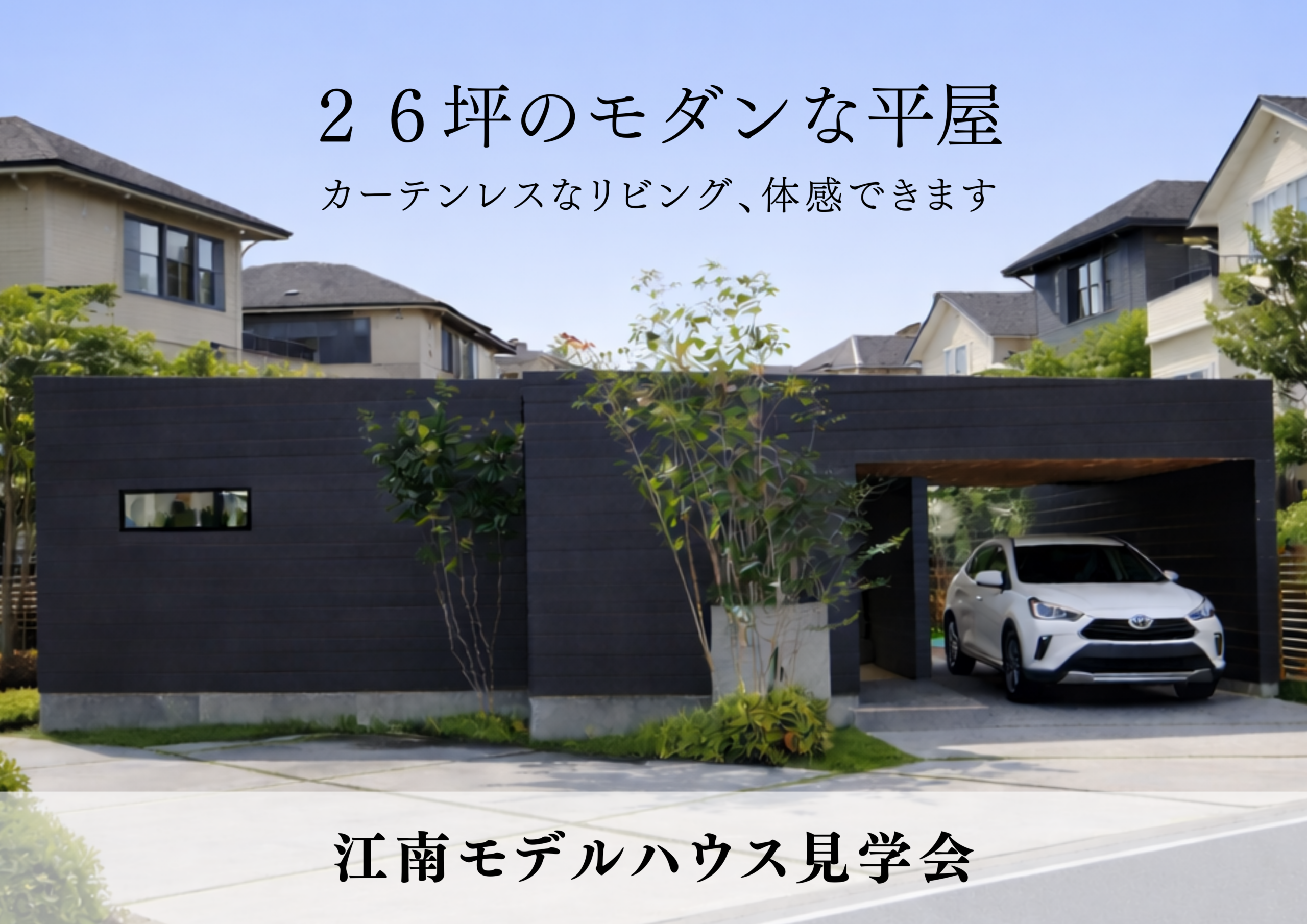 平屋、二階建て、二世帯住宅、ガレージハウス、アウトドアが楽しめる土間テラス、オシャレな外観など、ご要望に合わせたデザイン・設計が可能。完成見学会、モデルハウス見学会も随時開催しています。